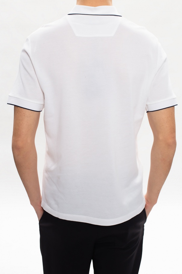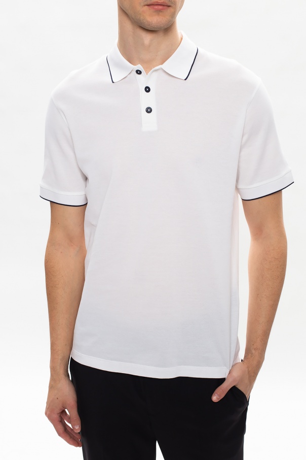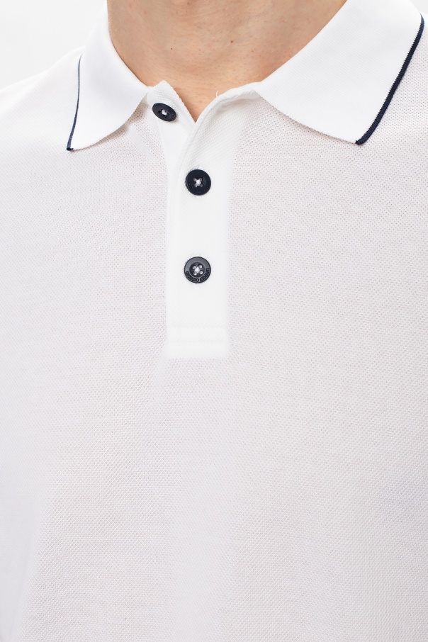 White and black polo shirt with buttons from Giorgio Armani. Made of cotton.