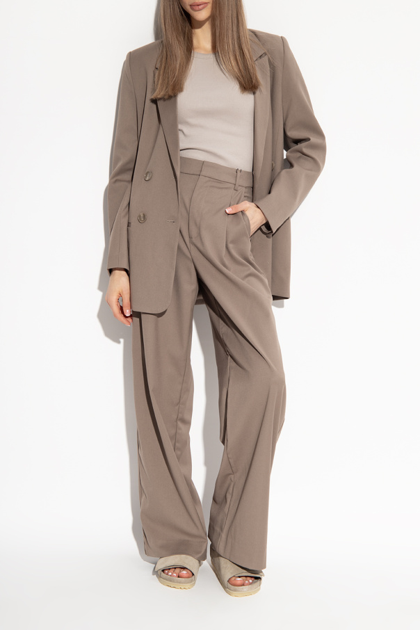 Greyish beige ‘Los Feliz’ slides from Birkenstock X Fear Of God. Crafted from suede, this model sits on a translucent rubber sole in yellowish beige and features a velcro closure, an embossed logo on the side and the brand\'s signature anatomically shaped cork-latex footbed.