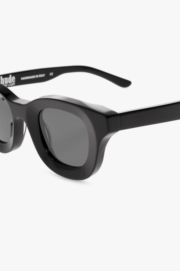 Black ‘Rhodeo’ sunglasses from Thierry Lasry x Rhude. This pair has square frames and dark grey lenses with 100% UV protection. Hand-crafted in Italy. Comes with a case.