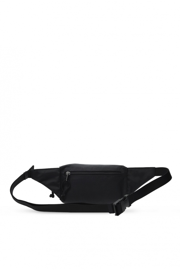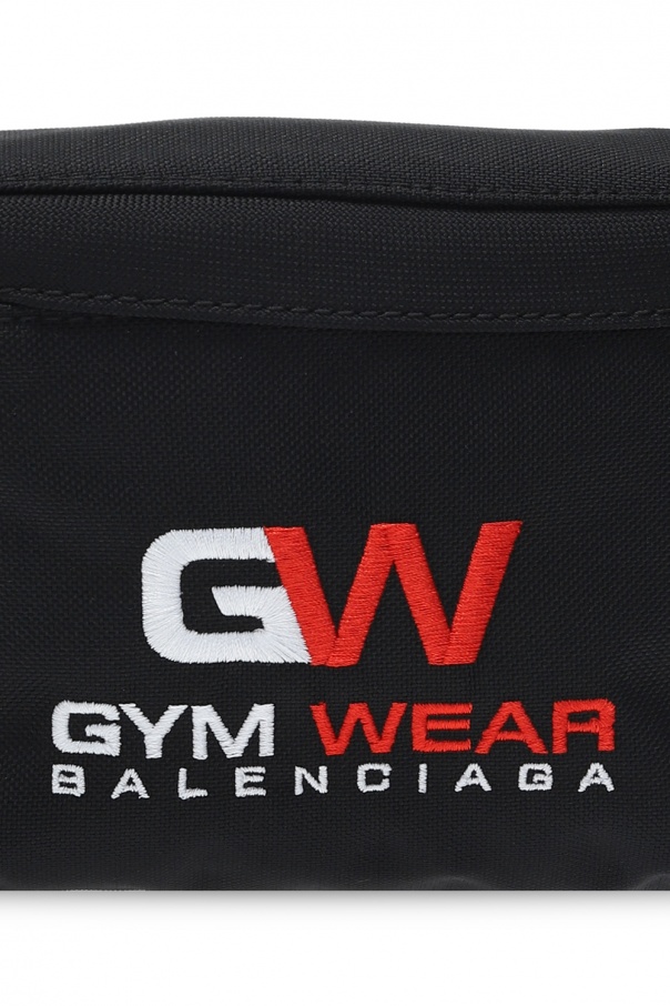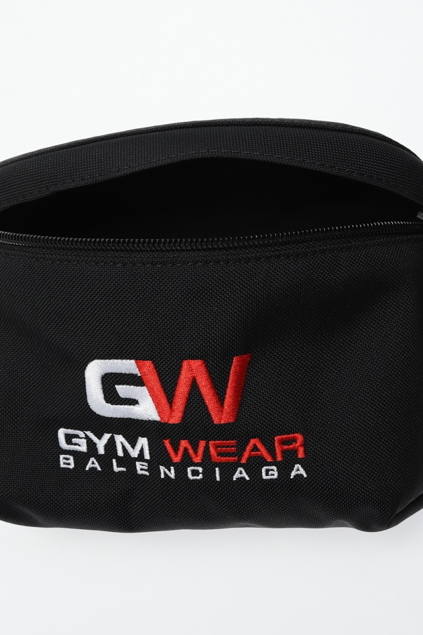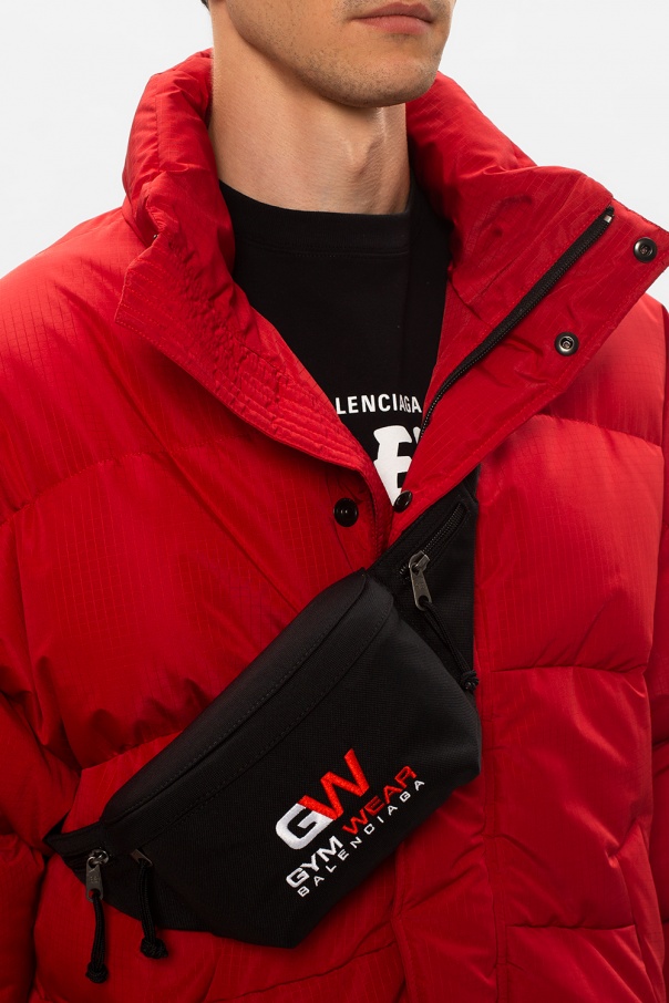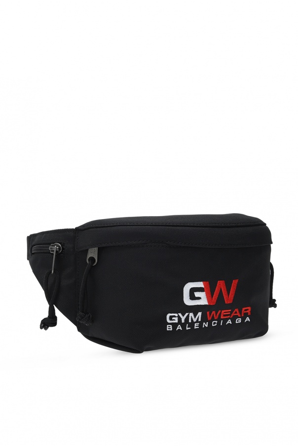 Black ‘Weekend’ belt bag from Balenciaga. Fastened with a zip, this design features a white and red embroidery, three zip pockets, adjustable belt and one main internal compartment.