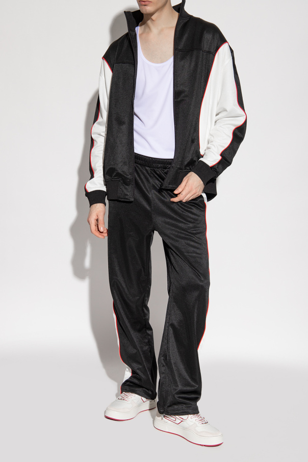 White, maroon and grey ‘S-UKIYO MID X’ high-top sneakers from Diesel. Made of leather, this lace-up model sits on a cream and maroon rubber sole and features a perforated toe and a white logo patch on the heel counter.