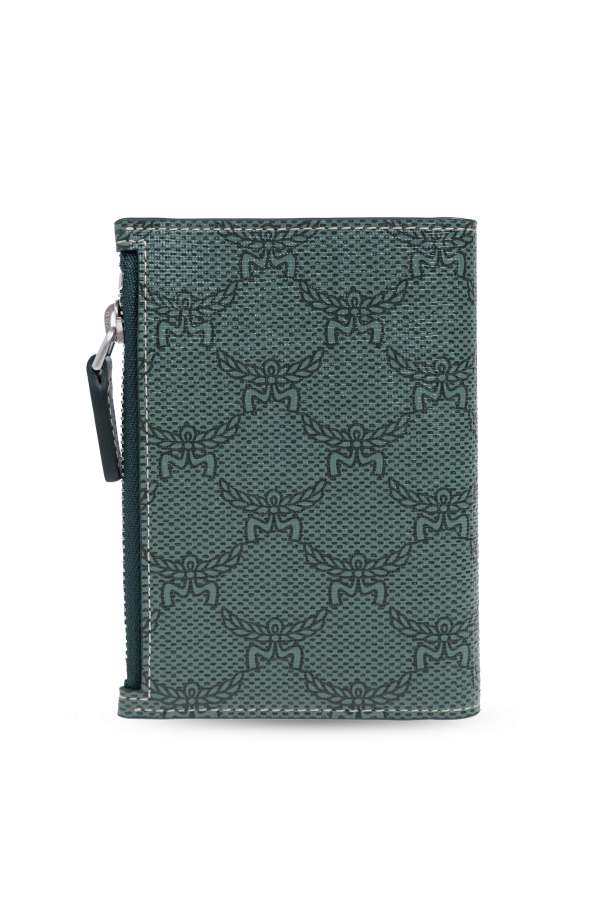 Introducing the exquisite Visetos Print Wallet by MCM, a testament to refined style and superior craftsmanship. This wallet stands out with its vibrant green hue, intricately adorned with the iconic MCM monogram pattern that forms a sophisticated grid, making it an instantly recognizable piece. The front of the wallet is embellished with the larger \"MCM\" inscription set within a laurel wreath, a distinctive logo that signifies luxury and heritage. Constructed from 100% canvas, this non-zip wallet elegantly secures your essentials with a snap closure, blending functionality with aesthetic appeal. Its interior, presented in a deep green tone with subtle finishes, features a comprehensive organization system. It includes a bill compartment, a zippered coin pocket, two slip pockets, and eight card slots, ensuring that every item is neatly stored and easily accessible. The Visetos Print Wallet is not just a utilitarian accessory; it is a statement of sophistication and a hallmark of MCM\'s commitment to quality. Its classic design, coupled with meticulous attention to detail, makes it an indispensable companion for the discerning individual. Why Purchase This Product? Elegance and functionality combined in a compact, snap-closure design. Signature MCM Visetos monogram pattern for an iconic, luxurious look. Ample storage with a bill compartment, coin pocket, slip pockets, and eight card slots. Crafted from high-quality canvas for durability and style. Distinctive MCM branding, including a laurel wreath logo, ensuring authenticity and prestige.