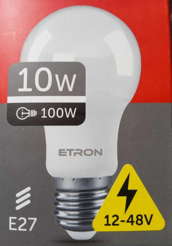 Светодиодная LED лампа ETRON 10W A60 12V-48V 4200K E27 дневной свет предназначена для внутреннего освещения жилых помещений и для использования в осветительных приборах (с соответствующей степенью защиты) размещенных снаружи помещений.