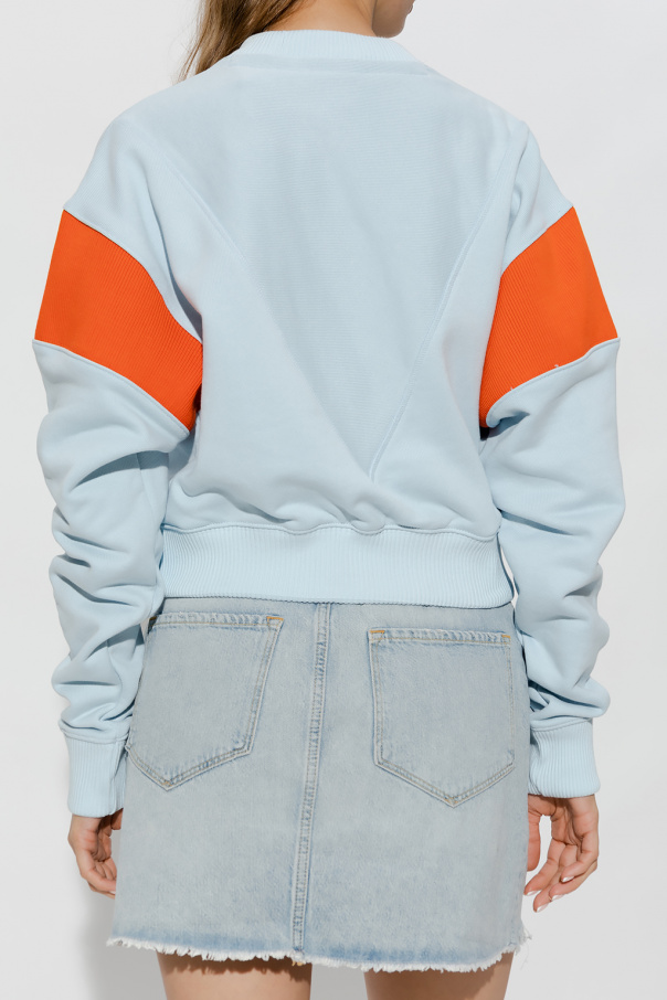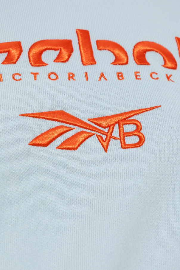 Light blue and orange cropped crewneck sweatshirt from Reebok x Victoria Beckham. Made of cotton, this garment features a logo embroidery, ribbed inserts on the shoulders and ribbed trims at the neck, hem and cuffs.