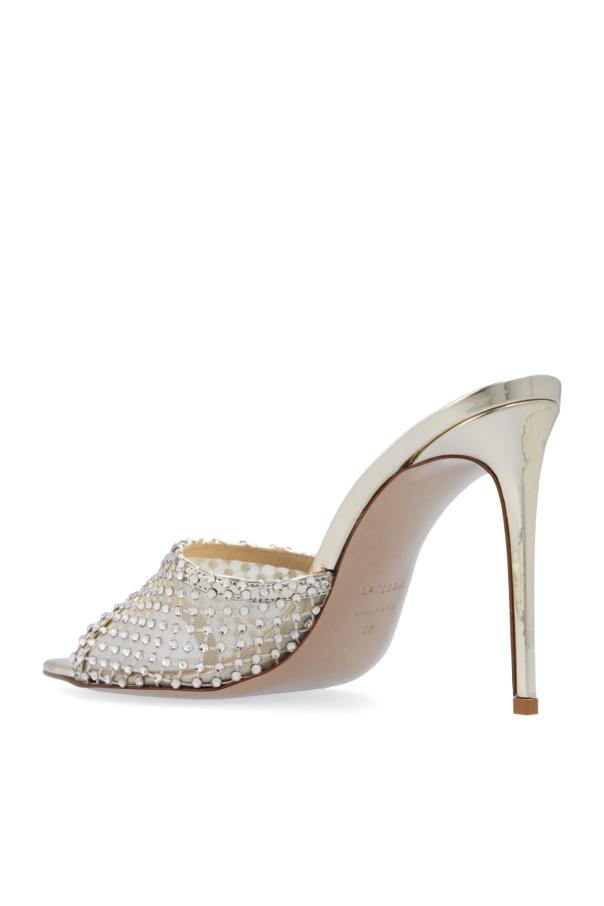 Introducing the ‘Gilda’ High-Heel Sandals by Le Silla, a testament to the artistry of modern shoemaking. These sandals exude a regal aura, with a dominant gold/beige color palette complemented by dazzling elements that may include crystals or gemstones, adding a touch of glamour to any ensemble. The design features a high, slender stiletto heel with a metallic appearance that gracefully contrasts the richly adorned upper. The open-toe detail signifies a piece crafted for formal or summery occasions, while the interior, cloaked in a smooth golden material, accentuates the exclusive nature of the sandals. The presence of the designer\'s golden logo on the inner sole marks an emblem of authenticity and prestige. Constructed with an outer layer of exquisite material and an inner lining of leather and rubber, these sandals promise not just unparalleled style but also comfort. The leather and rubber sole ensures a smooth, formal footing, perfect for making an impression at any high-end event. Why should you invest in these sandals? Exquisite craftsmanship and exclusive design by Le Silla. Luxurious detailing with crystals or gemstones for an opulent look. Elegance meets comfort with a leather and rubber inner lining. Suitable for formal and summery occasions, enhancing any outfit. Authenticity marked by the designer\'s logo, ensuring a prestigious addition to your collection.
