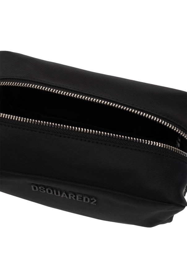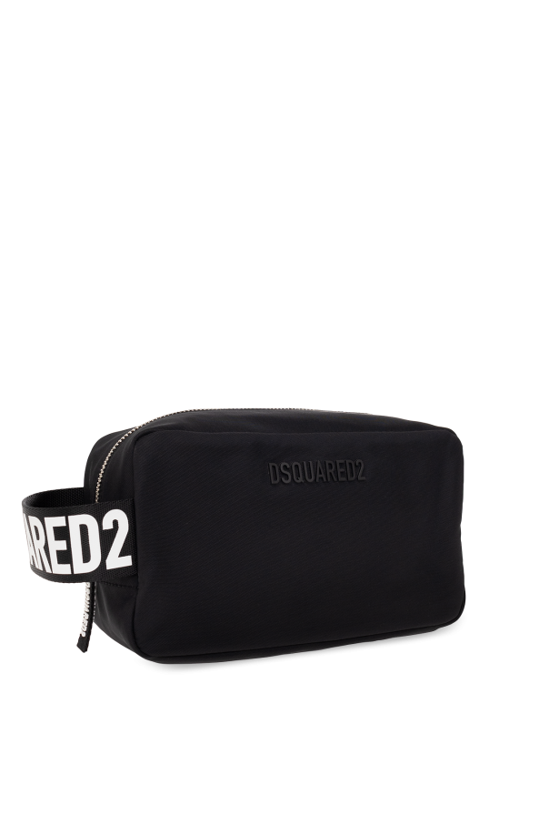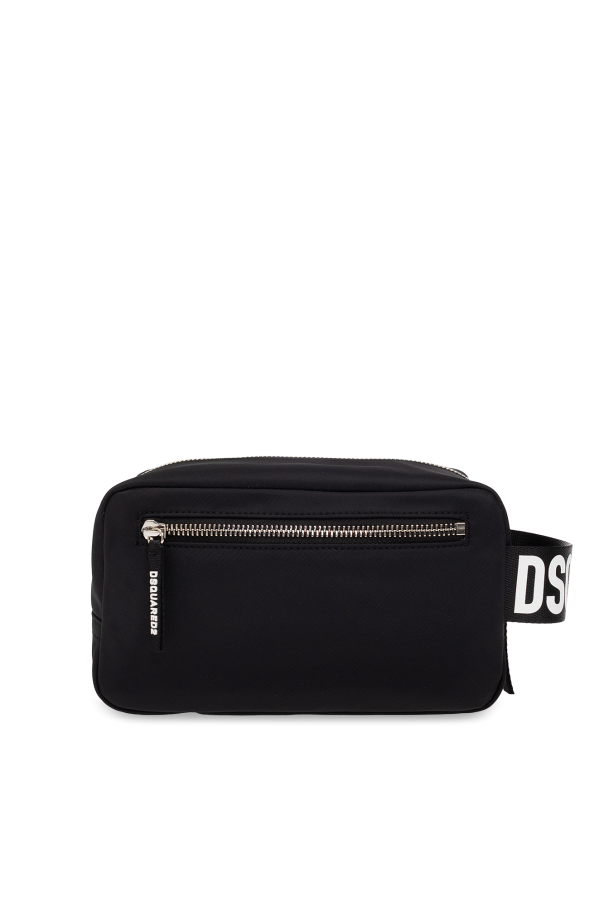 Black wash bag from Dsquared2. Fastened with a zip, this design features a logo detail, strap on the side, zipped back pocket and one internal compartment with one slip pocket.