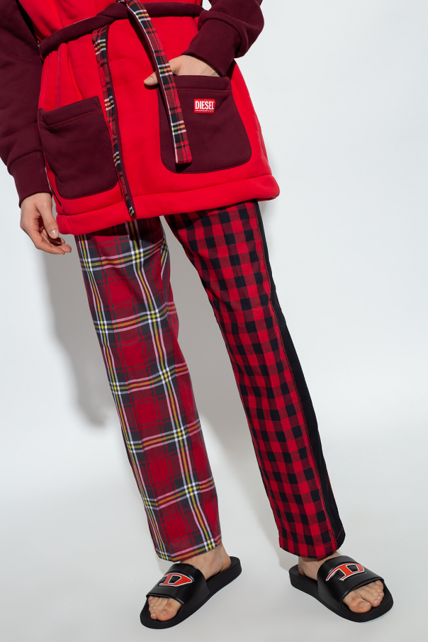 Multicolored ‘Umlb-Derik-Si’ pyjama pants from Diesel. Crafted from cotton, this garment features a logo-embroidered elastic waistband, check pattern and side pockets.