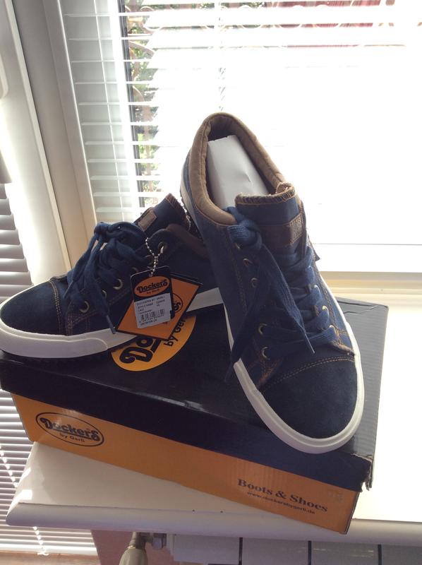 Dockers – популярный в Европе и не только, производитель обуви. В ассортименте немецкого бренда Dockers 5 черноеек обуви и одна из них кеды. Темно - синие под джинс, носок - замша. Размер 43, но маломерит. Стелька 27