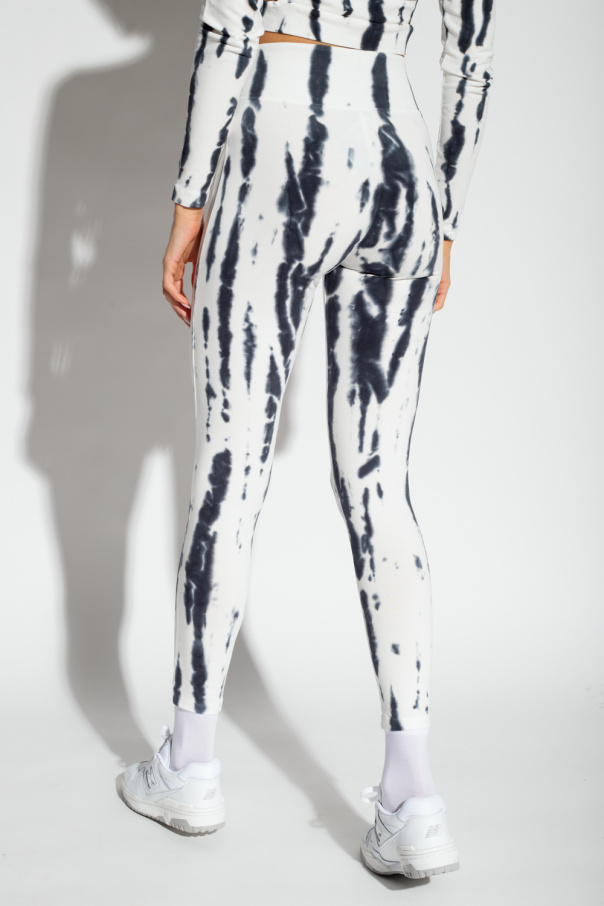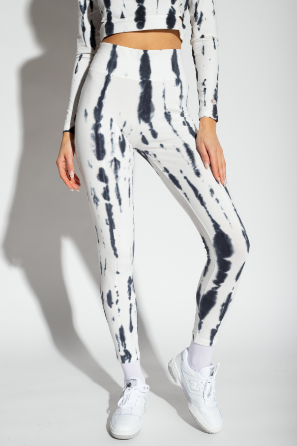 White and navy leggings from Champion. Made of cotton, this pair features an elastic waistband, tie-dye effect, logo patch and cropped legs.