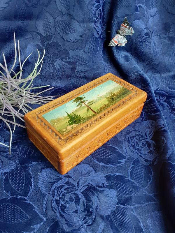 Шкатулочка сочетает в себе практичность и необыкновенную красоту! Советский винтажный предмет декора с широким функциональным назначением. Такую милую резную коробочку с удовольствием использовали в быту для хранения различных мелочей: недорогой бижутерии, ниток с иголками, россыпи пуговиц, бережно собиравшихся в семье, поздравительных открыток, табака и прочих мелочей.
