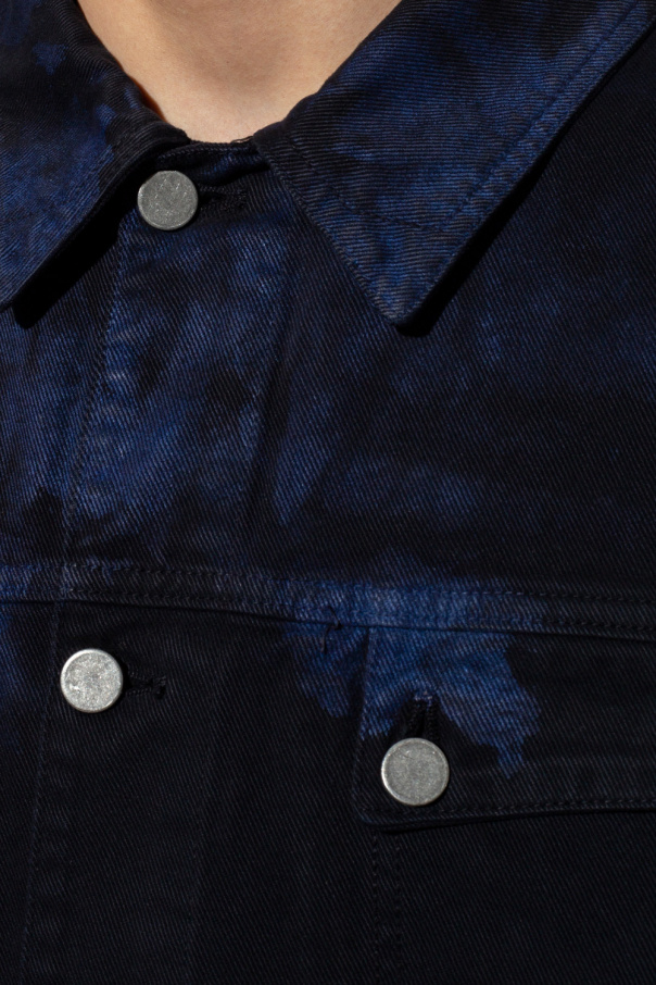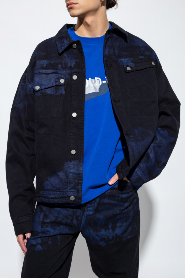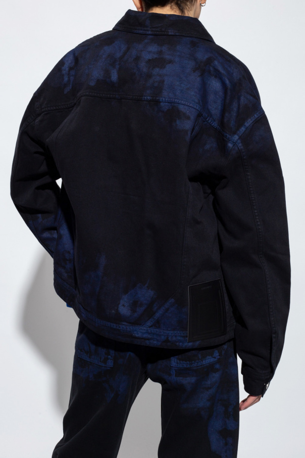 Black and navy denim jacket from A-Cold-Wall. Fastened with buttons, this garment features two slip pockets, two buttoned flap pockets, a logo patch and long sleeves with button cuffs.