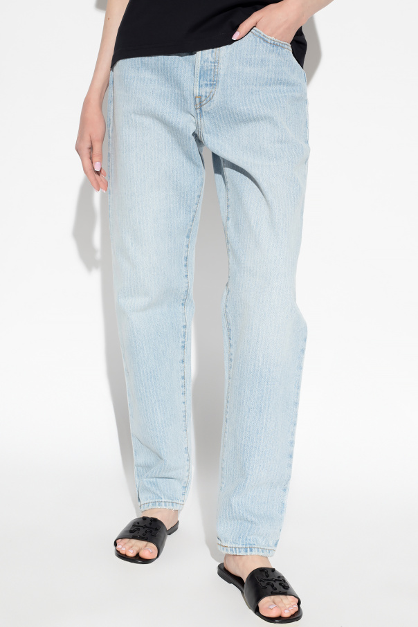 Light blue ‘501®’81’ jeans from Levi’s, the ‘Responsibly Made’ collection. Made of cotton. Inspired by the ‘80s, this pair features button fastenings, a logo-embossed patch at the back, distressed effect, stripe pattern, five slip pockets and slightly tapered legs.