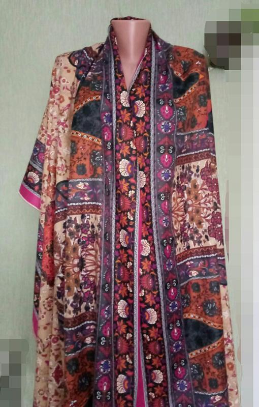 Шарф палантин шаль у східному стилі, розмір 220*92см. Новий. Бірка зі складом відсутня. Тактильно приемний, мякий, гарно драпірується.