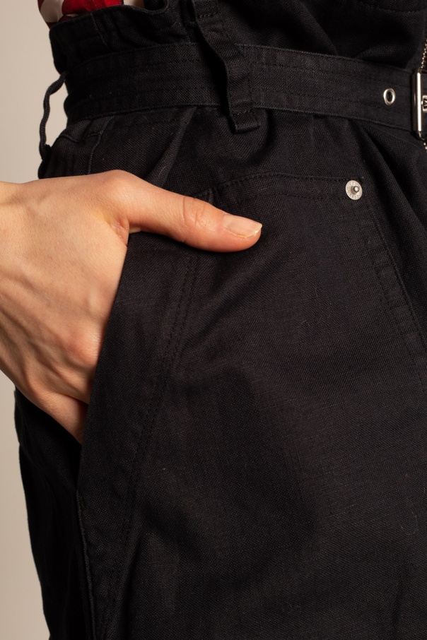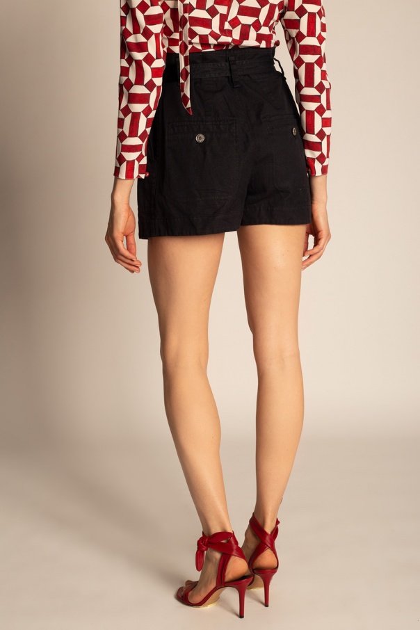 Navy shorts with a belt from Isabel Marant Étoile. Crafted from a cotton and linen blend, this design features a zip fastening, two front pockets, two buttoned back pockets.