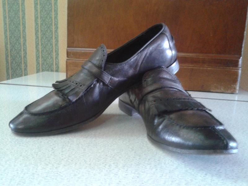 Мужские туфли - лоферы JOHN BARRITT с бахрамой и пряжкой, оригинал Италия, размер 42 (длина по стельке 28,4 см),цвет темно коричневый - какао с подпачками, все кожу: верх, внутри, подошва (прошитые), очень легкие и мягкие.