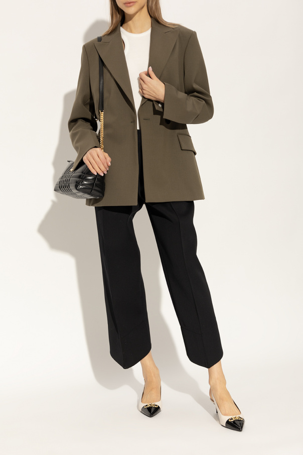 Cream and black ‘Parker’ pumps from Michael Michael Kors. Crafted from leather and trimmed with rubber, this model features a buckle strap fastening, a pointed toe with gold-tone hardware and a black rubber sole.