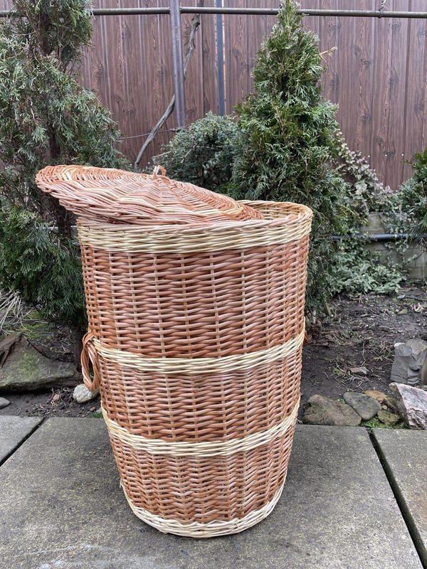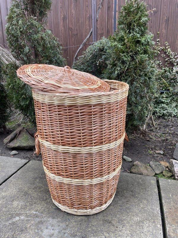 Корзина для білизни з лози матиме гарний вигляд у ванній кімнаті. У ній можна