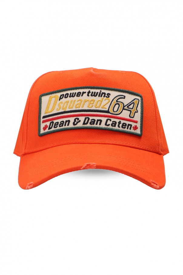 Orange baseball cap from Dsquared2. Emblazoned with a colourful logo patch, this piece of headwear features raw-cut edges and an adjustable strap.