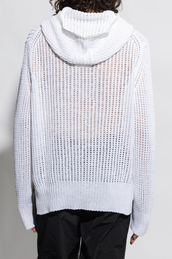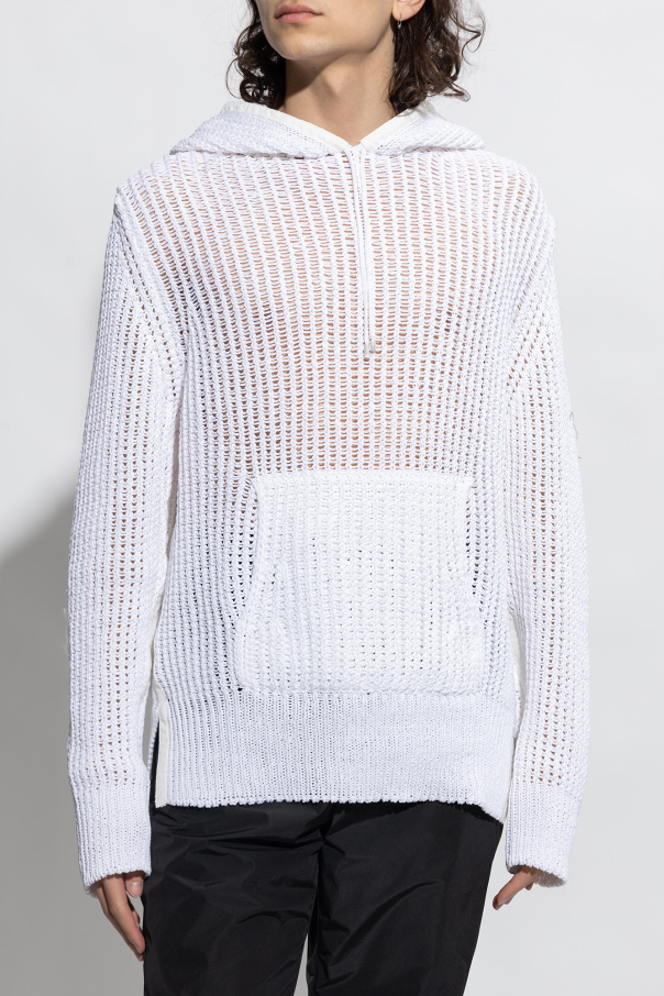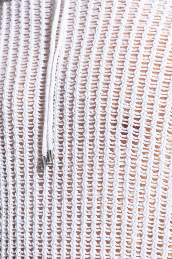 White openwork sweatshirt with a drawcord-adjustable hood from FERRAGAMO. Crafted from cotton with a relaxed fit, this style features a kangaroo pocket on the front, long sleeves and ribbing on the hem.