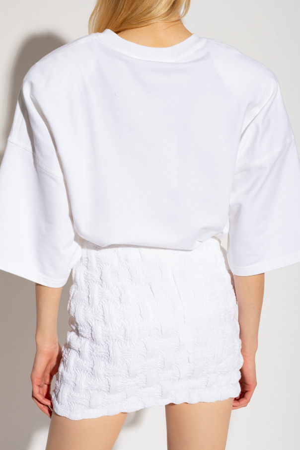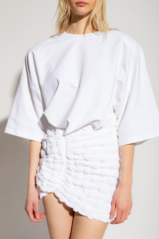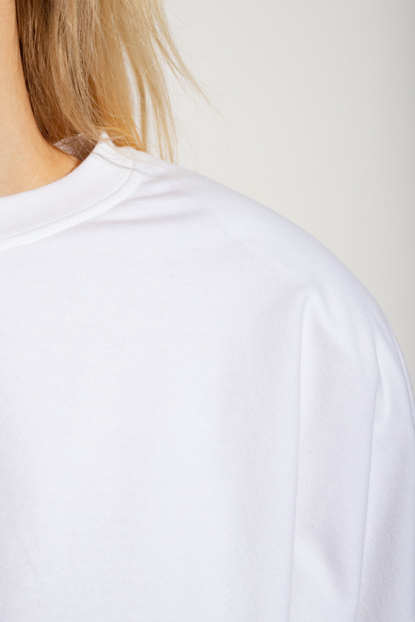 White ‘Cergy’ oversize T-shirt from The Mannei. Crafted from cotton, this design features a ribbed crew neck and padded shoulders.