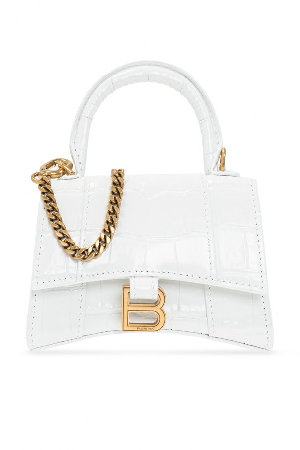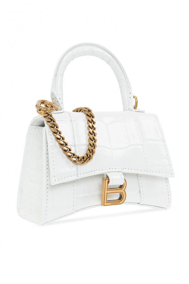 White shoulder bag from Balenciaga. Made of leather with a crocodile skin effect, this design features a metal logo, half-round handles, antiqued gold-tone metal hardware and one internal compartment with one card slot.
