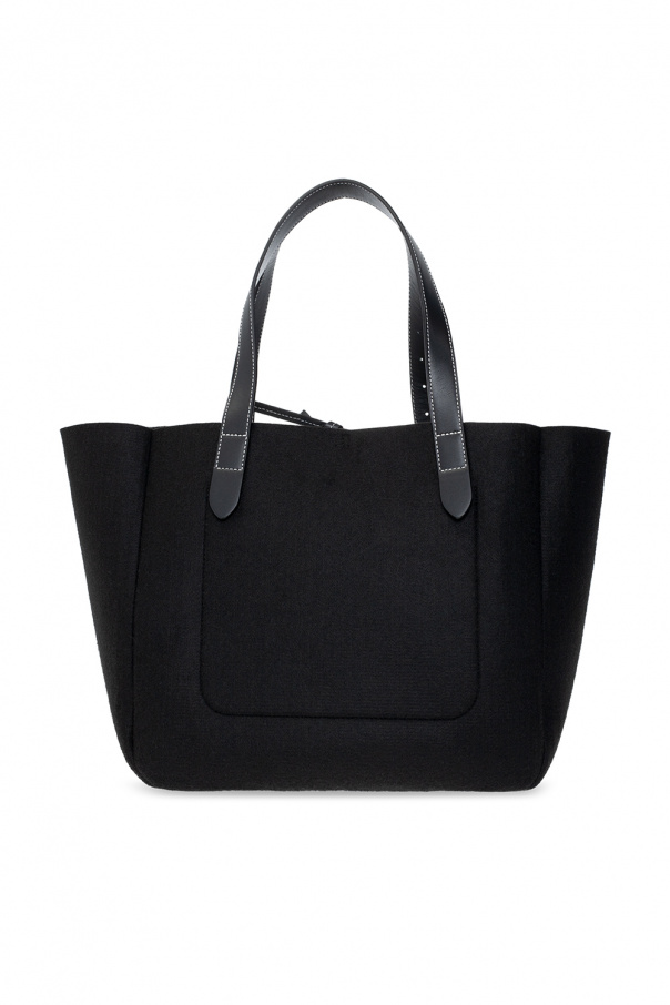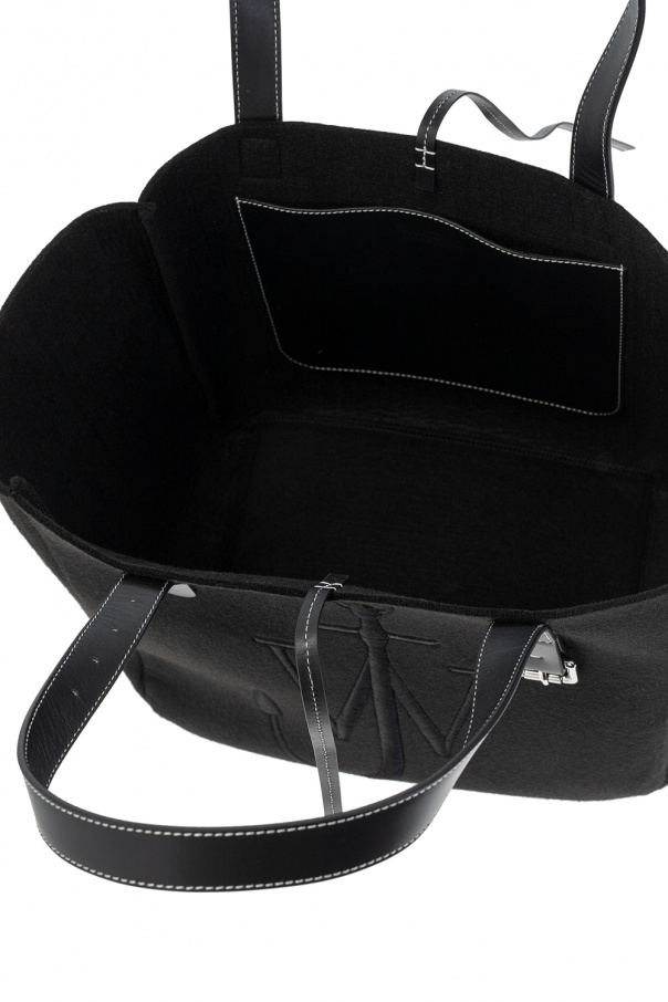 Black ‘Belt’ shopper bag from JW Anderson. Crafted from recycled materials, this design features logo embroidery, two half-round handles, leather trims and one internal compartment with a slip pocket.