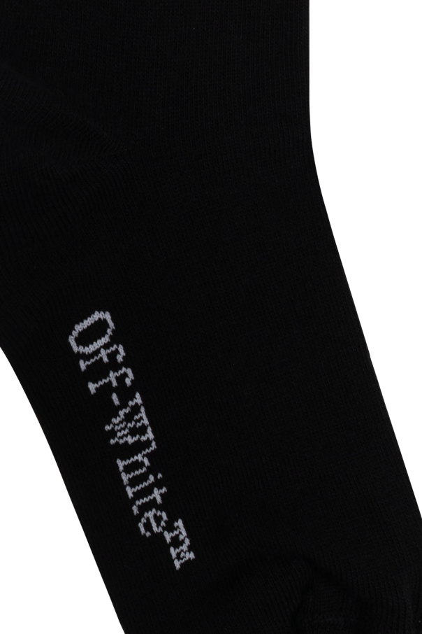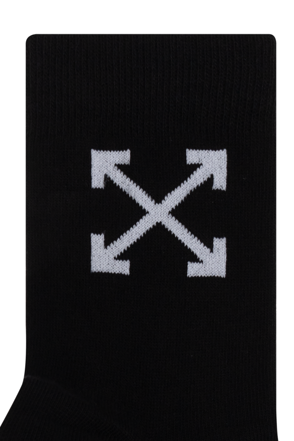 Introducing the Off-White Kids Cotton Logo Socks, an epitome of chic sophistication and avant-garde design. Crafted from a premium blend of cotton, polyamide, and elastane, these black socks exude both comfort and durability. Embellished with the unmistakable Off-White™ branding, the classic silhouette features a bold white logo of outward-facing arrows atop, accompanied by the iconic \"Off-White™\" inscription at the base. This exclusive piece for children\'s luxury apparel seamlessly merges modern aesthetics with exceptional craftsmanship. Rooted in the rich heritage of Italian design, Off-White Kids embodies a contemporary cultural ethos under the visionary guidance of creative director Virgil Abloh. The brand\'s Milanese design house captures the essence of cultural narratives, offering a unique identity that is both unmistakable and extraordinary. Why Choose This Product? Exquisite blend of materials for superior comfort Distinctive design with iconic logos Part of an exclusive children\'s luxury collection Reflects cutting-edge cultural and fashion trends