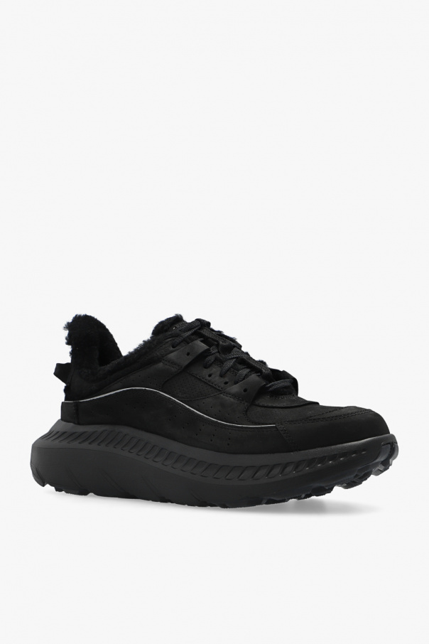 Black ‘CA805 V2’ sneakers from UGG. Crafted from leather, this lace-up model sits on a black and red rubber sole and features an embossed logo pattern and ‘UGGplush™’ wool trimming.