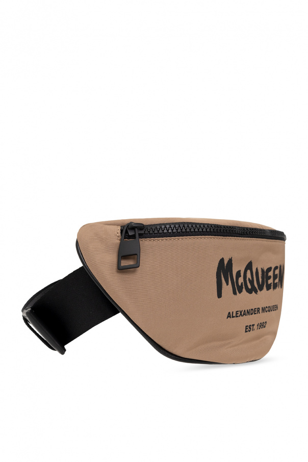 Brown and black belt bag from Alexander McQueen. Crafted from recycled fabric, this model features a zip fastening, logo print, adjustable strap and one internal compartment with one card slot.