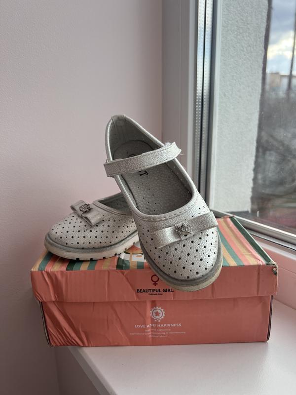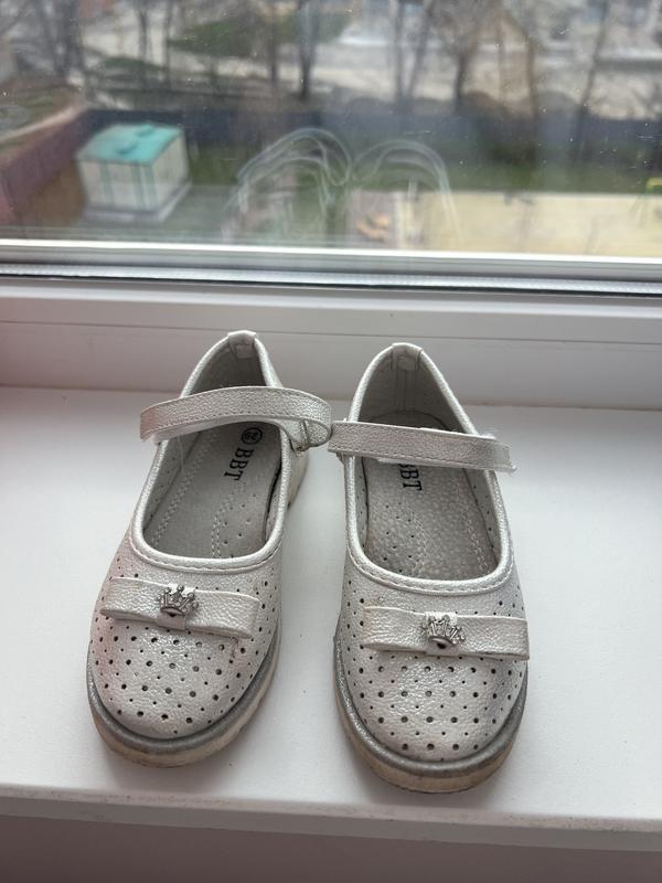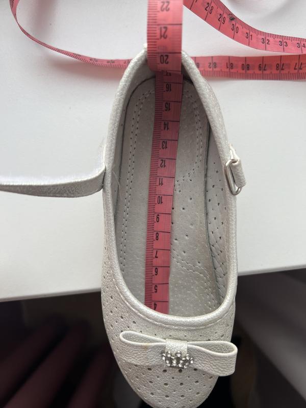 Красивые туфельки на девочку, размер указан 29, но они маломерят (есть фото сколько по стельке). Надели, пожалуй, пару раз. Ножем а них нп потеет даже летом через отверстия которые есть на туфельках.