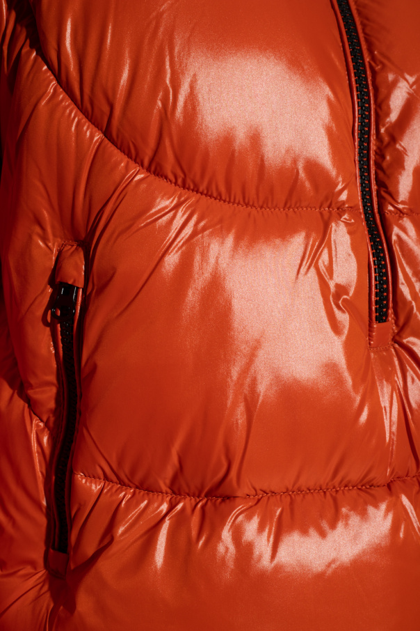 Orange ‘Holly’ quilted jacket from Save The Duck. Padded with synthetic down Plumtech®, this style offers waterproof and windproof properties and features an oversize fit, a zip fastening, a drawstring hood with a black logo patch, two zip pockets, dropped shoulders, wide sleeves and sides with fastenings. Temperature range: from -10°C up to +5°C.