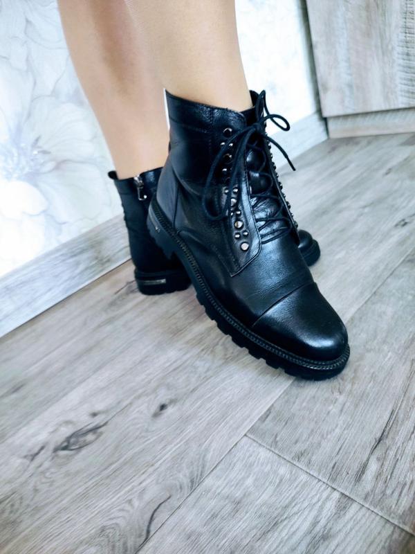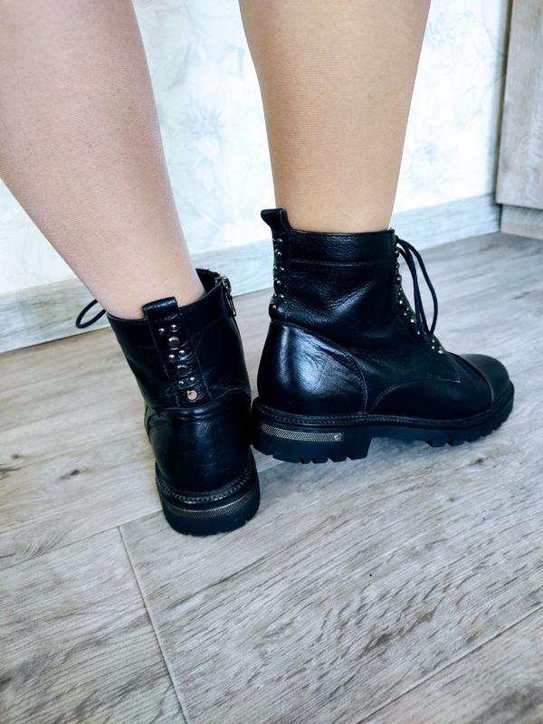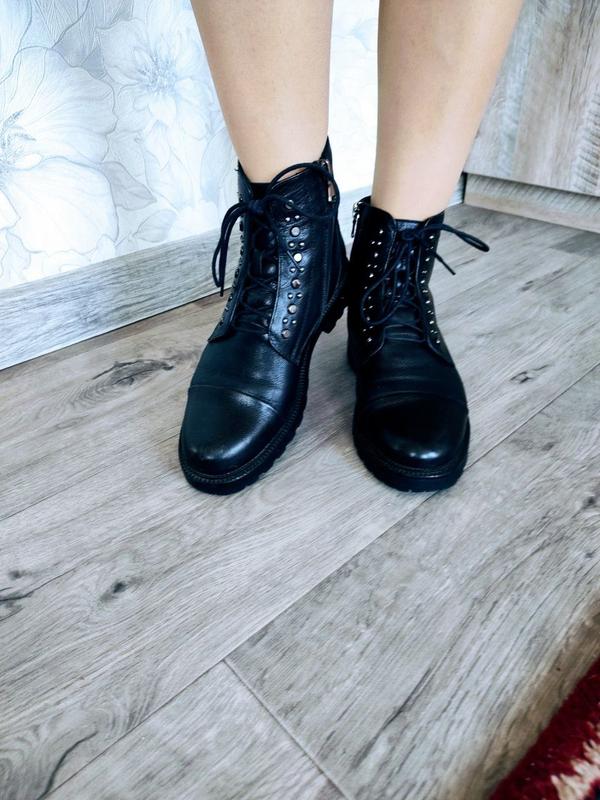 Чобітки демісезон, шкіра, м'яка підкладка, взуті тричі. Підходять на невеликий мінус на початку зими. Розмір виробника 38, устілка по довжині 24,5 см, в ширину устілка 8 см. Щільна підошва. Виглядають стильно.
