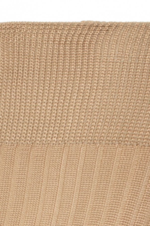 Beige socks from Dsquared2. Crafted from silk, this pair features an elastic edge and a black graphic pattern with the brand\'s logo.