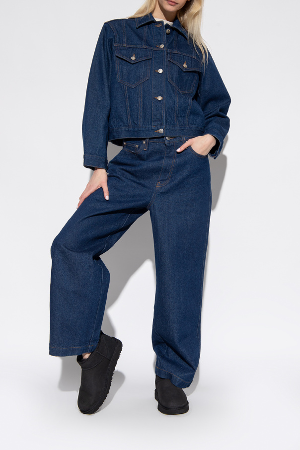 Black ‘Classic Ultra Mini’ snow boots from UGG. Made of suede, this pair features a logo pattern, black rubber sole and shearling trims.