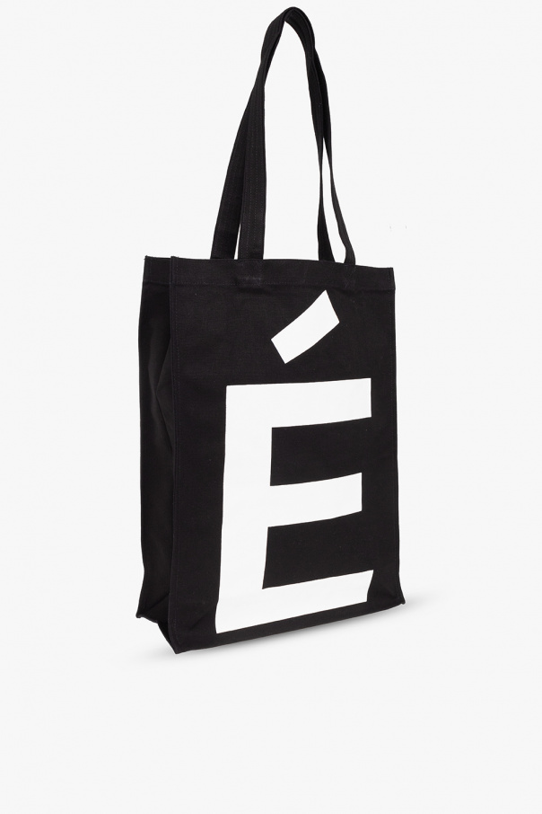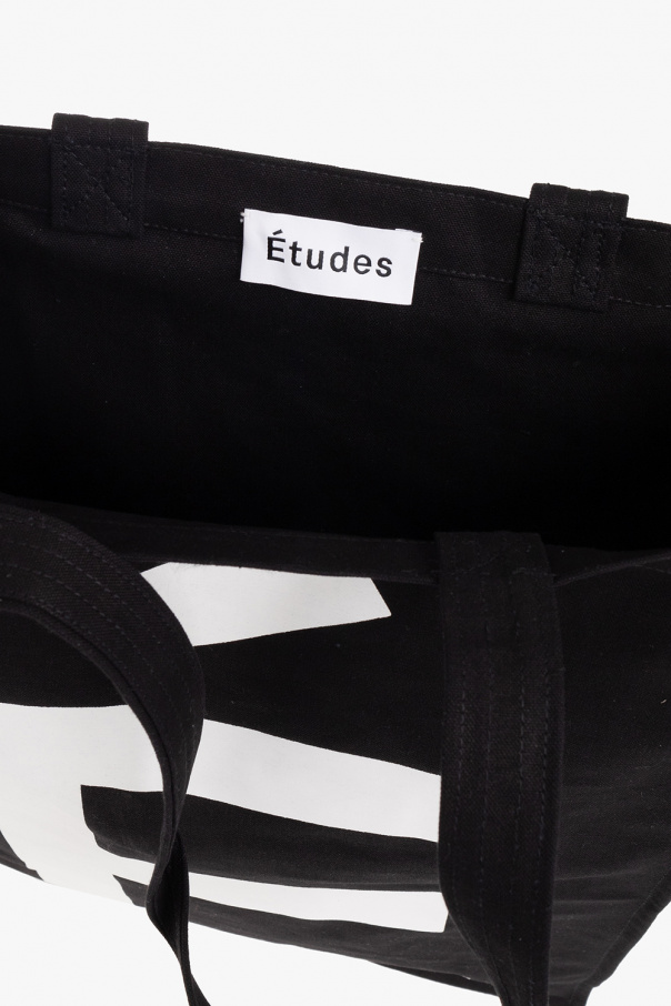 Black shopper bag from Etudes. Made of cotton, this model is decorated with a white logo print.
