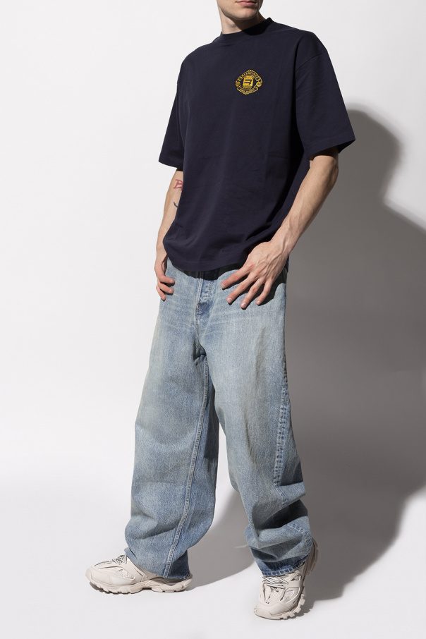 Light grey sneakers from Balenciaga. Set on a light grey rubber sole, this lace-up pair is decorated with a black logo print.