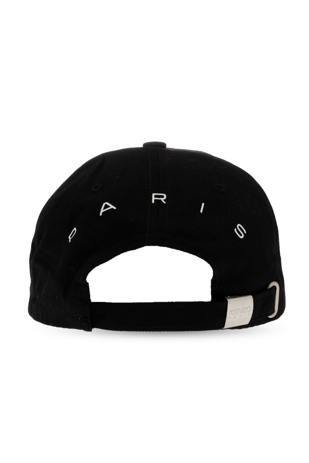 Black baseball cap from Kenzo. Made of cotton, this item adjusts via a buckle strap and showcases a white graphic print with the brand\'s logo.