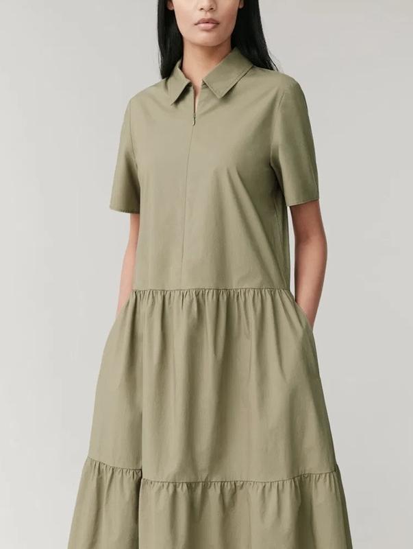 Надзвичайно приємна хрустка тканина.Змішування стилів. Ця сукня має гострий комір із частковою застібкою спереду та спідницю з присбореними панелями, що поєднує сучасний і традиційний дизайн.