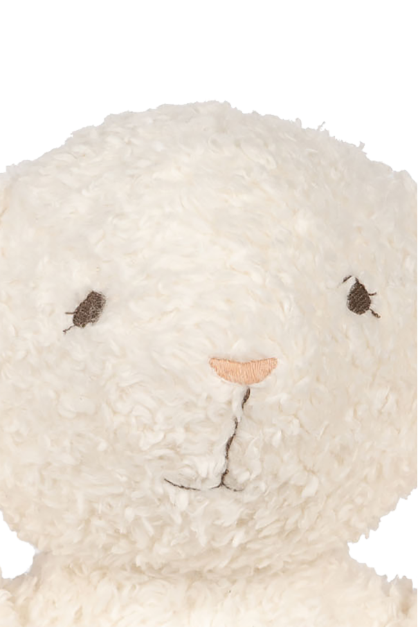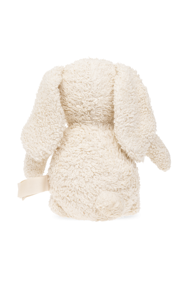 Cream rabbit toy from Konges Slojd. Made of organic cotton, this item is embroidered with a lemon motif.