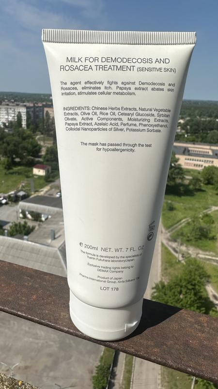 Молочко эффективно борется с демодексом и розацеей, снимает зуд. Успокаивает раздраженную кожу, стимулирует клеточный метаболизм. Улучшает состояние кожи, предотвращает демодекс.