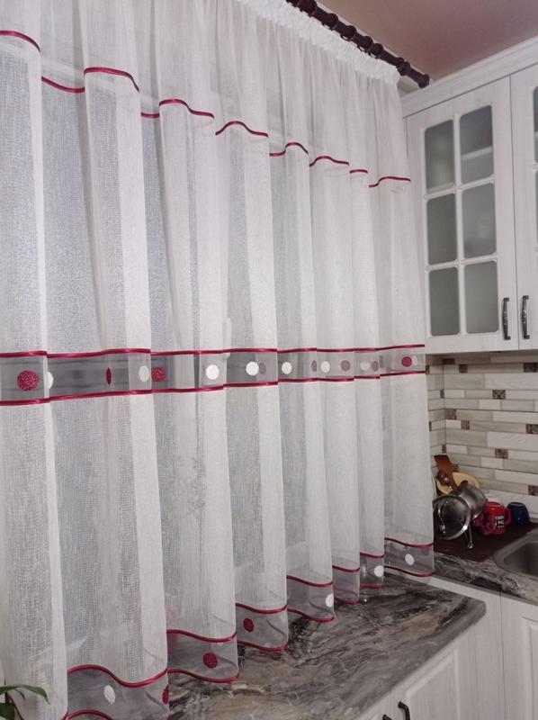 Кремовая котоновая сетка, декор - фатин с бордово-кремовыми шариками.