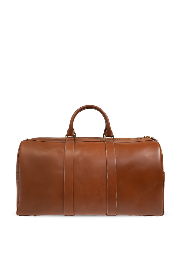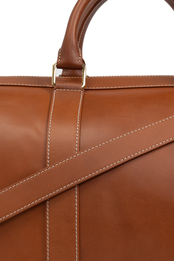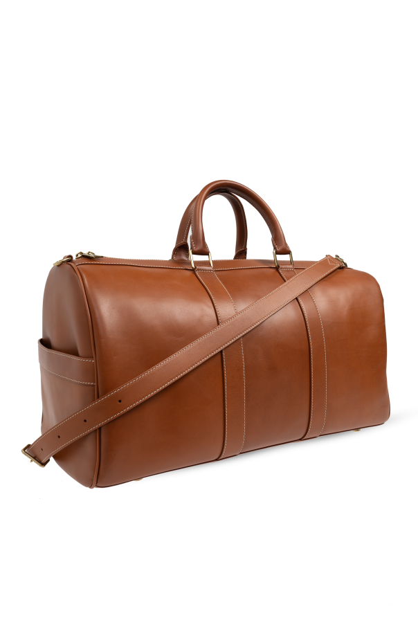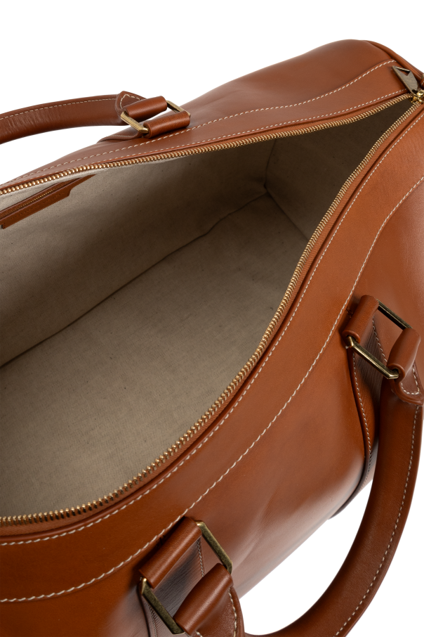Introducing the Bottega Veneta Holdall Bag, an epitome of refined craftsmanship and timeless elegance. This exquisitely designed travel bag boasts a classic rectangular shape with rounded edges, offering ample space for your essentials. Crafted from premium brown leather, the bag exudes a luxurious appeal. The smooth texture of the leather is complemented by solid leather handles and a detachable, adjustable shoulder strap. The bag features gold-tone metal hardware, including a two-way zipper, enhancing its sophisticated look. The interior is lined with a light-colored fabric, providing a striking contrast that makes it easier to locate items. It includes a main compartment, a zippered pocket, and two slip pockets for added convenience. The minimalist design is accentuated by elegant stitching and discreet branding, typical of Bottega Veneta\'s understated luxury. Why Choose This Product? Exquisite design by Bottega Veneta, a renowned name in luxury fashion. High-quality 100% leather exterior and 100% fabric interior. Spacious and functional with multiple pockets. Elegant gold-tone hardware for a sophisticated finish. Versatile with both handles and a shoulder strap.