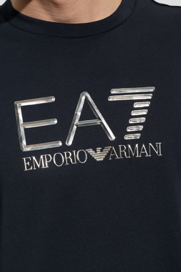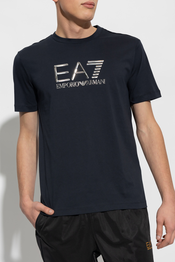 Navy crewneck T-shirt from EA7 Emporio Armani. Crafted from cotton, this garment is decorated with a raised logo in silver-tone.