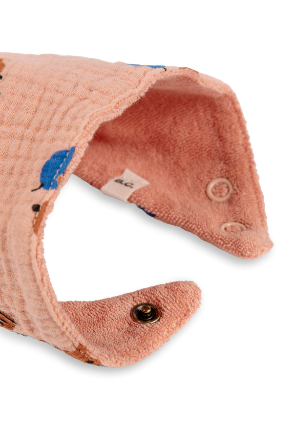 Introducing the Muslin Set: Bib and Blanket by the esteemed Spanish brand Bobo Choses. This enchanting set, crafted from premium organic cotton muslin, embodies both elegance and whimsical charm. Designed for the tender age of 0-36 months, it ensures unparalleled comfort and style for your little one. The blanket showcases a delightful pink hue adorned with playful brown animal prints, accented by quaint blue hats. Its lightweight, breathable texture renders it exquisitely soft and gentle against a baby\'s delicate skin. The rectangular shape with rounded corners and evenly distributed prints make it a visual delight. Complementing the blanket, the bib shares the same charming pattern and color palette. It features a triangular shape with rounded edges and a double snap closure for adjustable fit and effortless use. The inner side is lined with a plush terry cloth for added absorbency and comfort. Elegantly packaged, this set comes with the brand\'s signature label, making it an ideal gift for discerning parents. Why Choose This Product? Exquisite design by Bobo Choses, known for its imaginative and playful aesthetics. Crafted from 100% organic cotton muslin, ensuring superior softness and breathability. Unique and charming animal prints that delight both children and parents. Adjustable and practical bib design for ease of use. Elegant packaging, perfect for gifting.