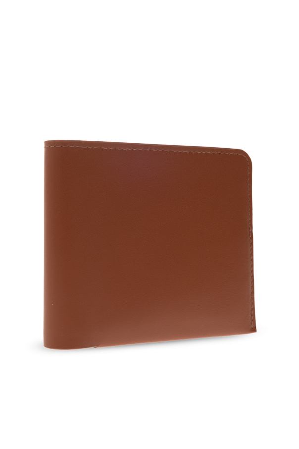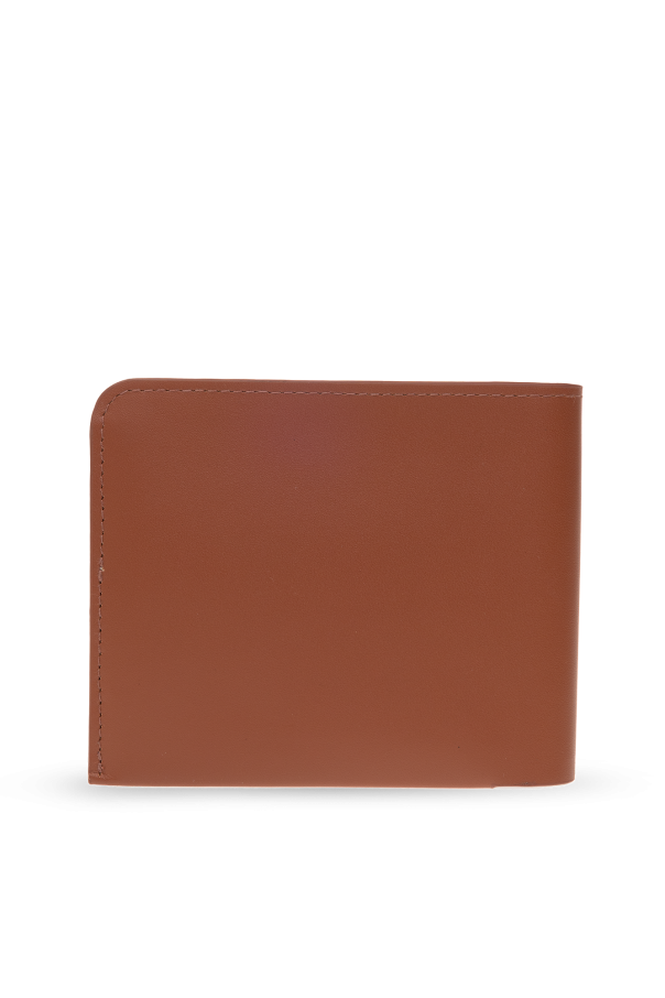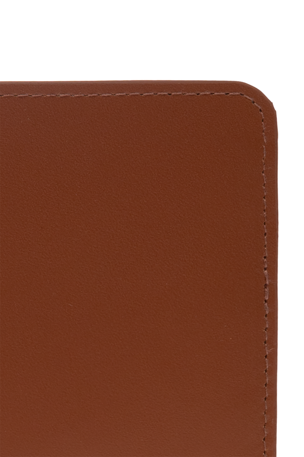 Brown folding wallet from Dries Van Noten. Made of leather, this item features a grey and brown-clad interior with a bill pocket, two slip pockets and six card slots.