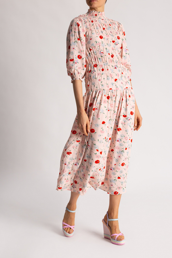 Multicolored ‘Ines’ wedge sandals from Sophia Webster. Trimmed with leather, this pair features a buckled ankle strap, logo detail and pink rubber sole.