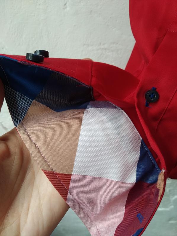 Очень красивая, новая, без бирки, мужская рубашка! Качество отличное, 100 % коттон! Насыщенный красный цвет, Манжеты, горловина, ворот отделаны красивой тканью в клетку. Очень красивый дизайн, все продуманно до мелочей, качественная!!! Подойдёт на S.