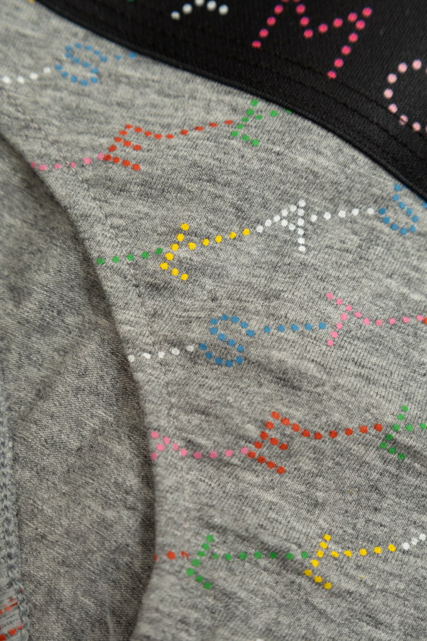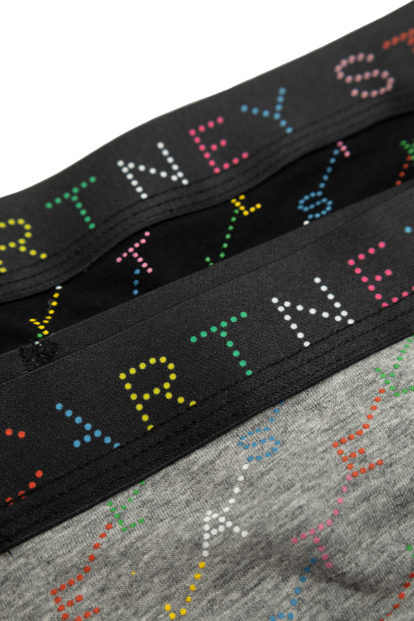 Introducing the Stella McCartney Kids Two-Pack Underwear, an exquisite addition to your child\'s wardrobe. This delightful set features two pairs of underwear designed for both comfort and style. The charming patterns, inspired by constellations, add a whimsical touch to these everyday essentials. Crafted from a luxuriously soft blend of cotton and elastane, these panties ensure supreme comfort and a gentle feel against the skin. The classic brief cut offers a timeless look, while the elastic waistband, adorned with the signature \"STELLA McCARTNEY\" in colorful dots, provides a secure and snug fit. One pair showcases a sophisticated gray color with a vibrant pattern, while the other pair is a sleek black with a similarly enchanting design. Packaged in an elegant white box with a window, this set is perfect for gifting or personal indulgence. Why Choose This Product? Premium Quality: Made from a soft cotton blend for ultimate comfort. Stylish Design: Unique constellation-inspired patterns. Exclusive Branding: Signature \"STELLA McCARTNEY\" waistband. Elegant Packaging: Comes in a beautiful white box, ideal for gifting.