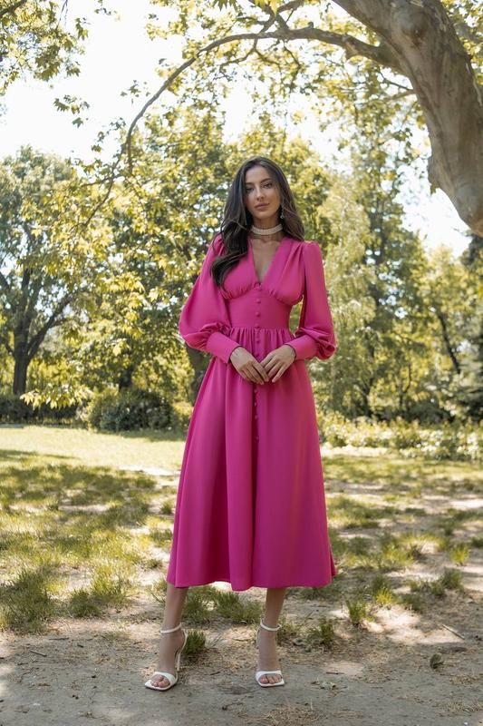 Зроблено в Україні?:Производство ,Материал:Шелк , Креповый трикотаж ,Особенности модели:С разрезом на ноге ,Длина рукава:Длинный ,Особенности:На выпускной , Коктельное ,Сезон:Лето , Осень , Весна , Демисезон ,Стиль:Романтический ,Декор:Пуговицы ,Описание