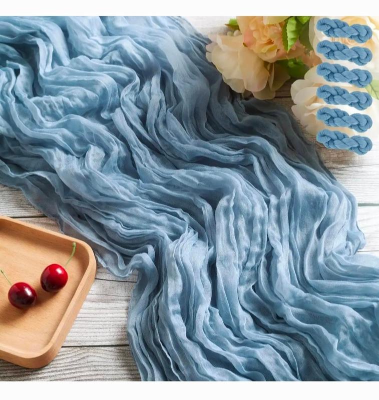 Раннер марлевый набор.Колир Дасти блу.Дорожка 2м×90см+6шт салфеток 45×35см